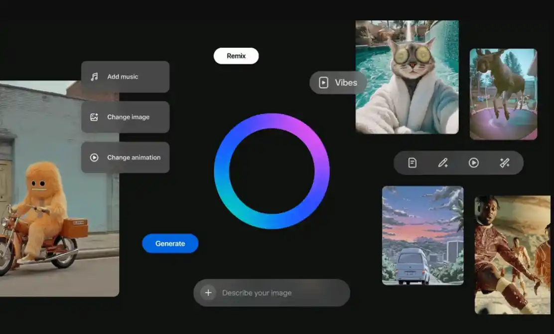 - Vibes este un feed dedicat videoclipurilor AI, asemănător cu Instagram Reels sau TikTok, dar exclusiv pentru conținut generat de inteligență artificială2.
