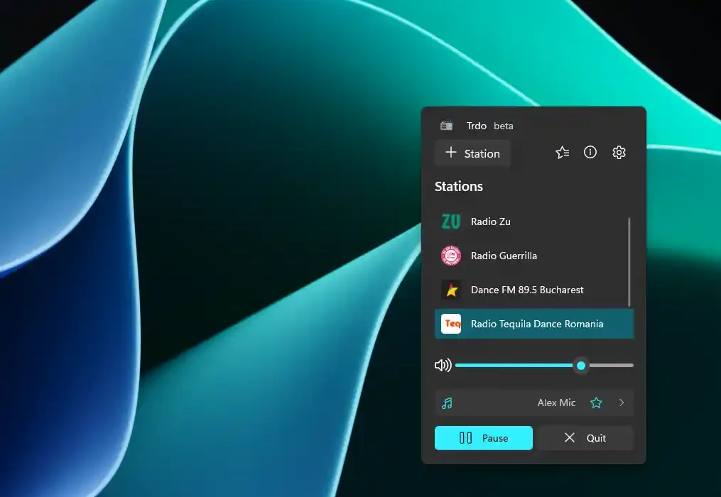 Trdo este un player de internet radio pentru Windows, creat pentru a fi rapid, discret și extrem de ușor de folosit. Aplicația trăiește în System Tray și îți permite să comuți instant între posturile tale preferate, exact ca un radio auto cu butoane presetate.